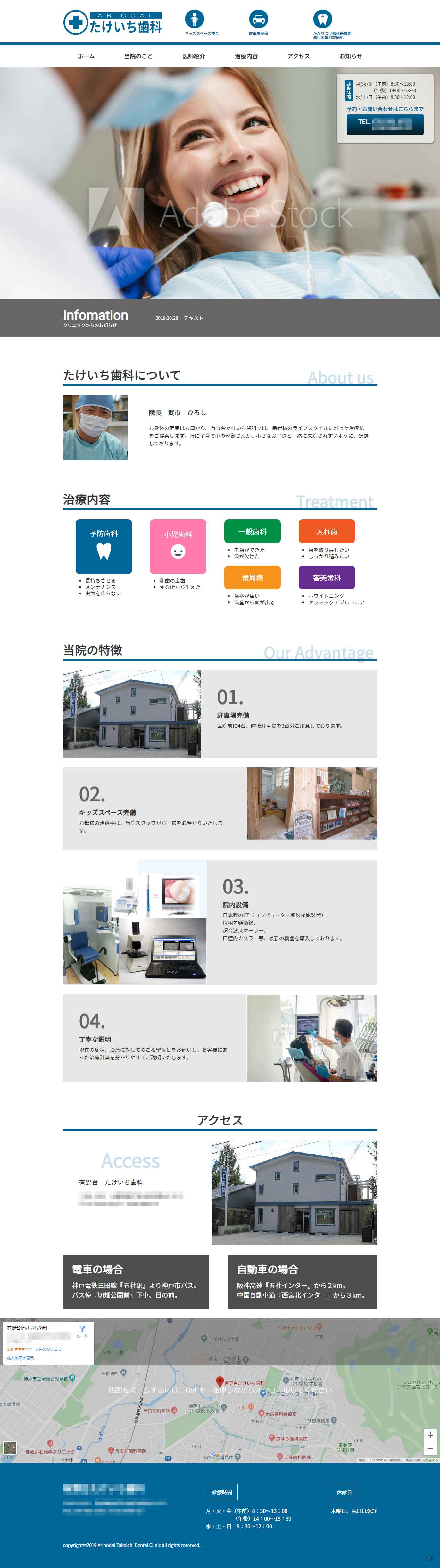 信頼性や安心感が伝わるデザインを目指しました。歯医者を選んでいる方が実際に通院するイメージを持ちやすくするために、院内の紹介、導入設備の紹介などのコンテンツを設け、安心して通院できることをアピールしています。